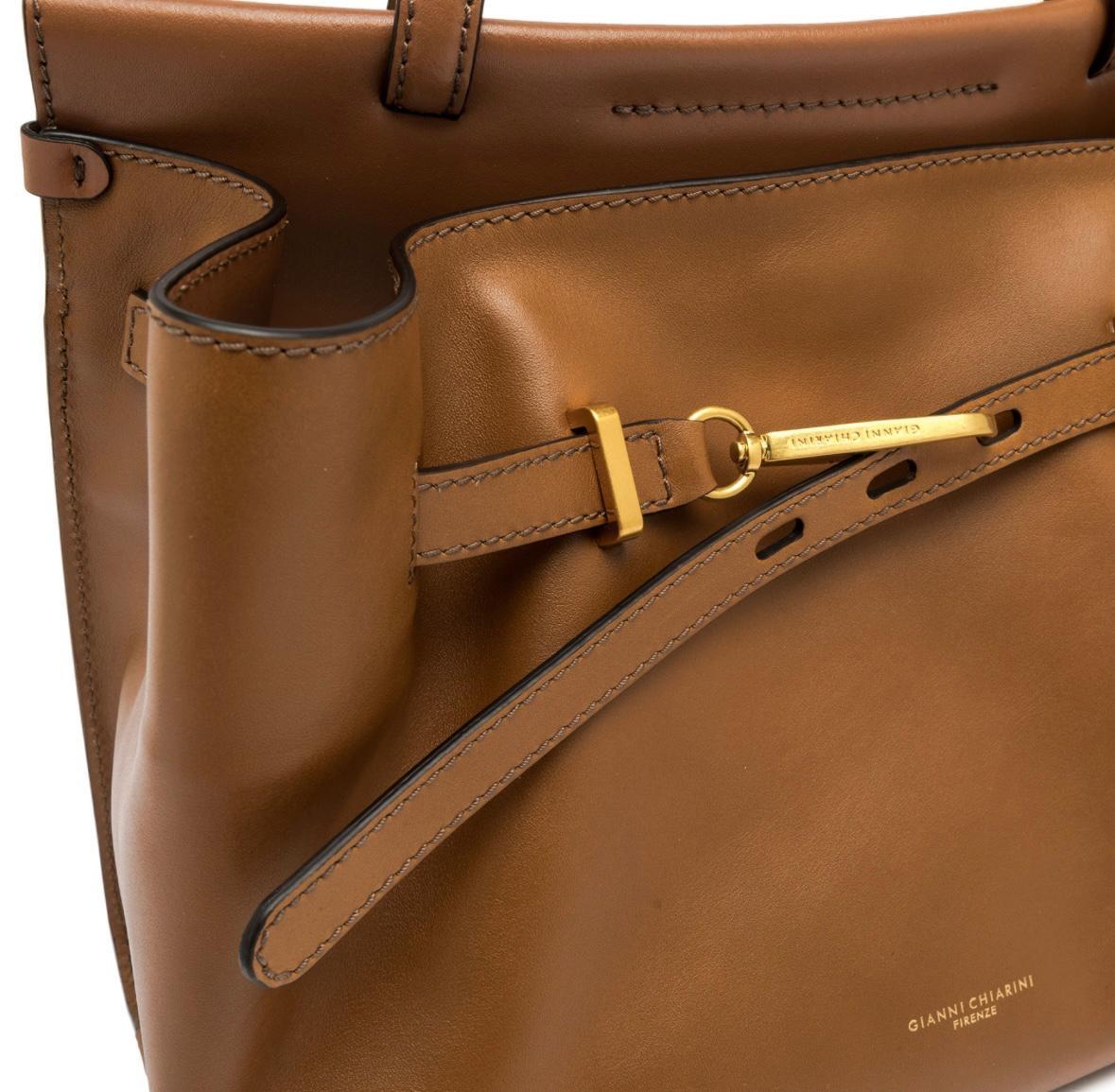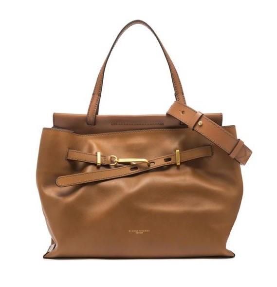 Borsa realizzata in pelle liscia , ampio scomparto interno con moschettone logato che avvolge la borsa