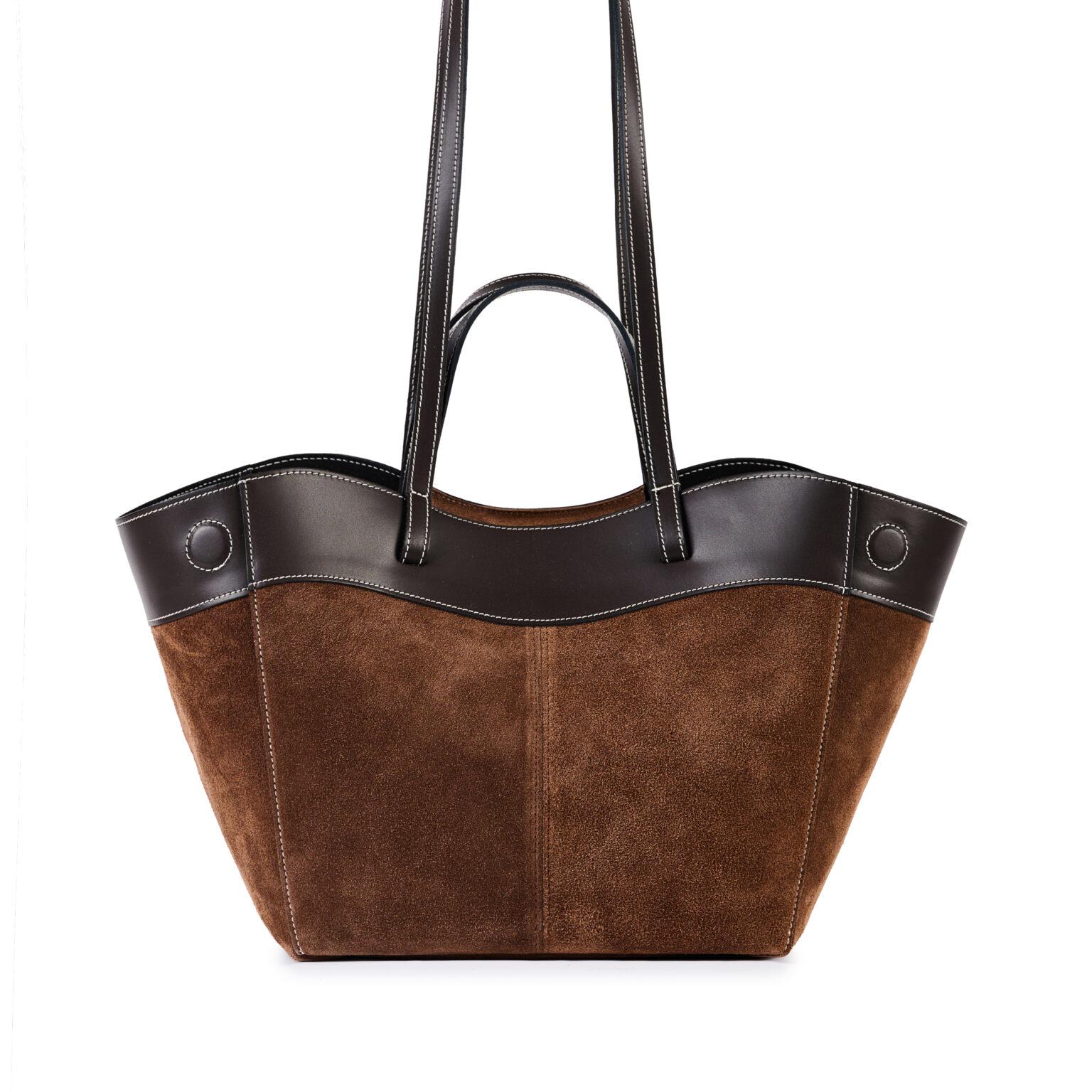Borsa in camoscio con dettagli in pelle ,shopping forma trapezio