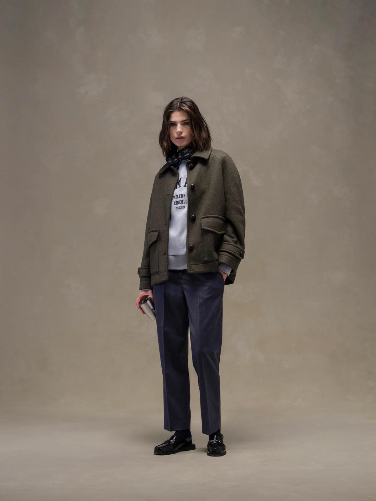 chiuso da bottoni “ loden” in cuoio Passante sul fondo della manica con bottone , sfoderato , finito in sartoria , avvolgente e caldo e confortevole