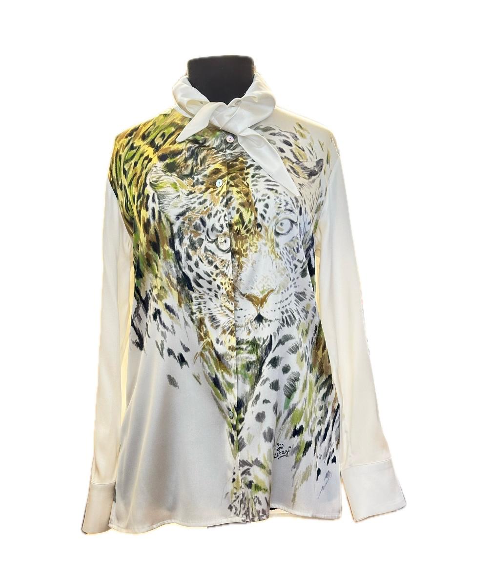 Camicia in seta con stampa piazzata