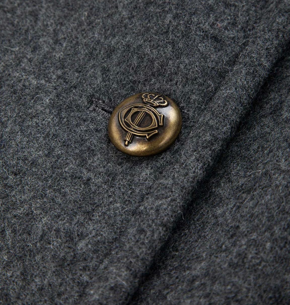 Doppio petto in misto lana , foderato , rever classico con asola , sei bottoni in metallo , sul davanti tasche laterali a filetto