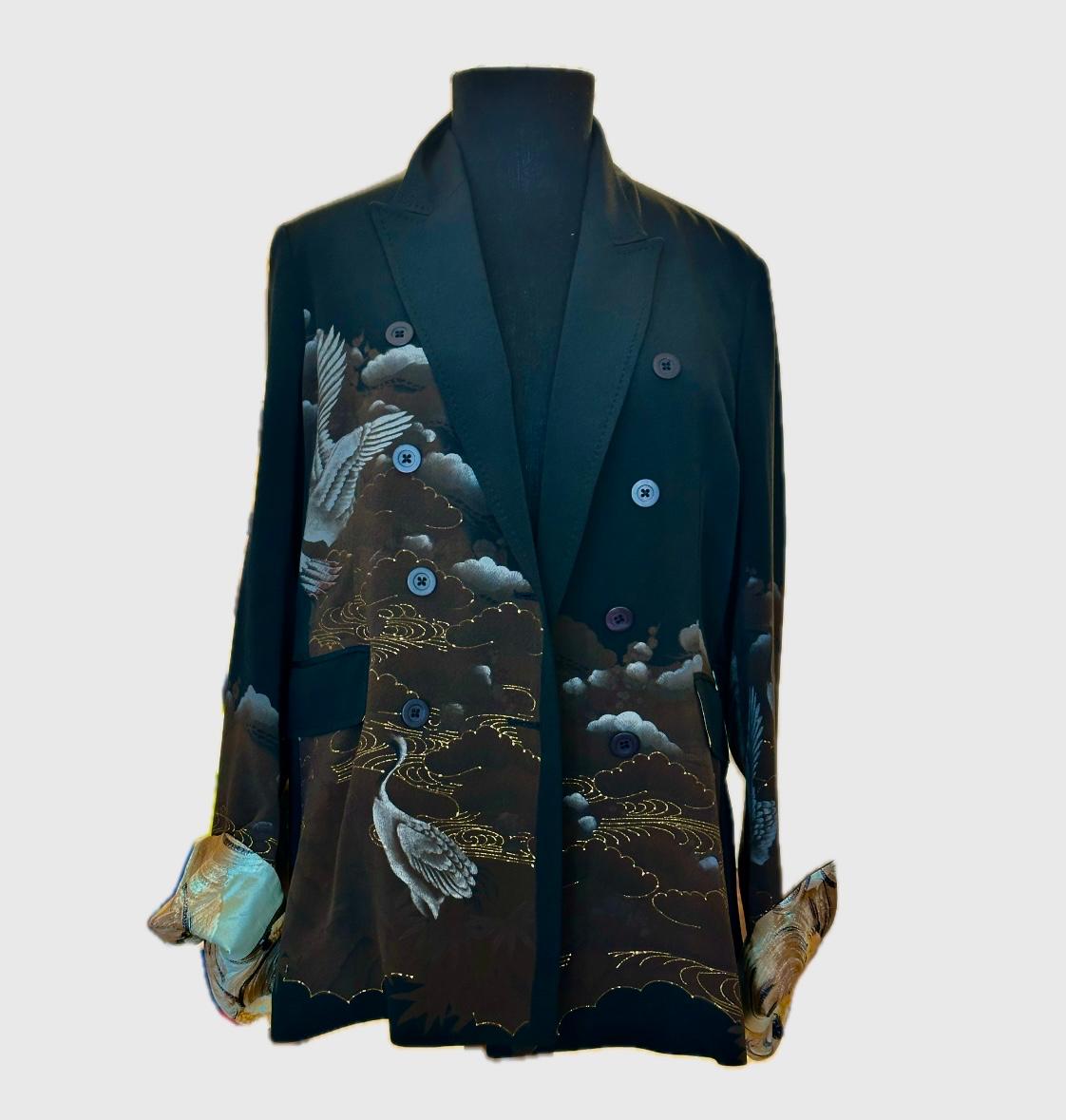 Giacca realizzata con recupero di kimono antichi di seta con preziosi ricami a intarsio