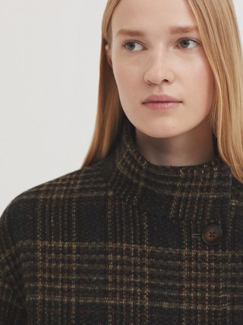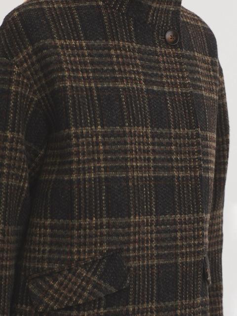 Giaccone realizzato in tessuto misto lana , chiusura leggermente laterale con 2 bottoni a vista e 3 interni