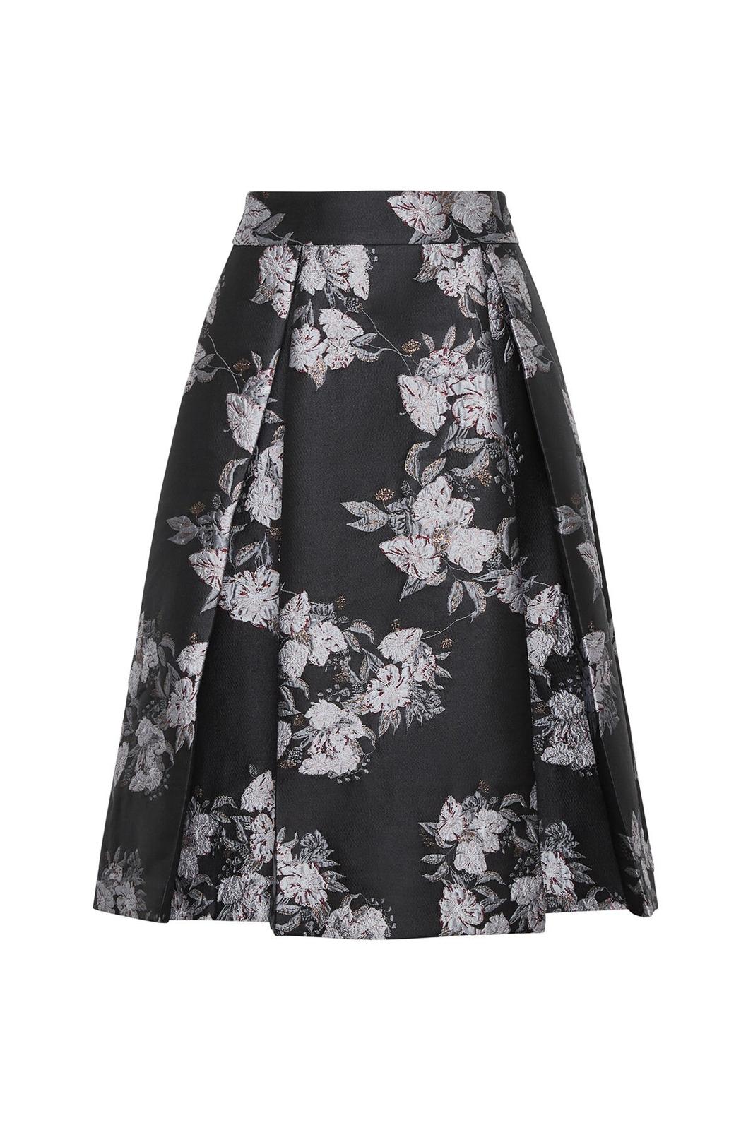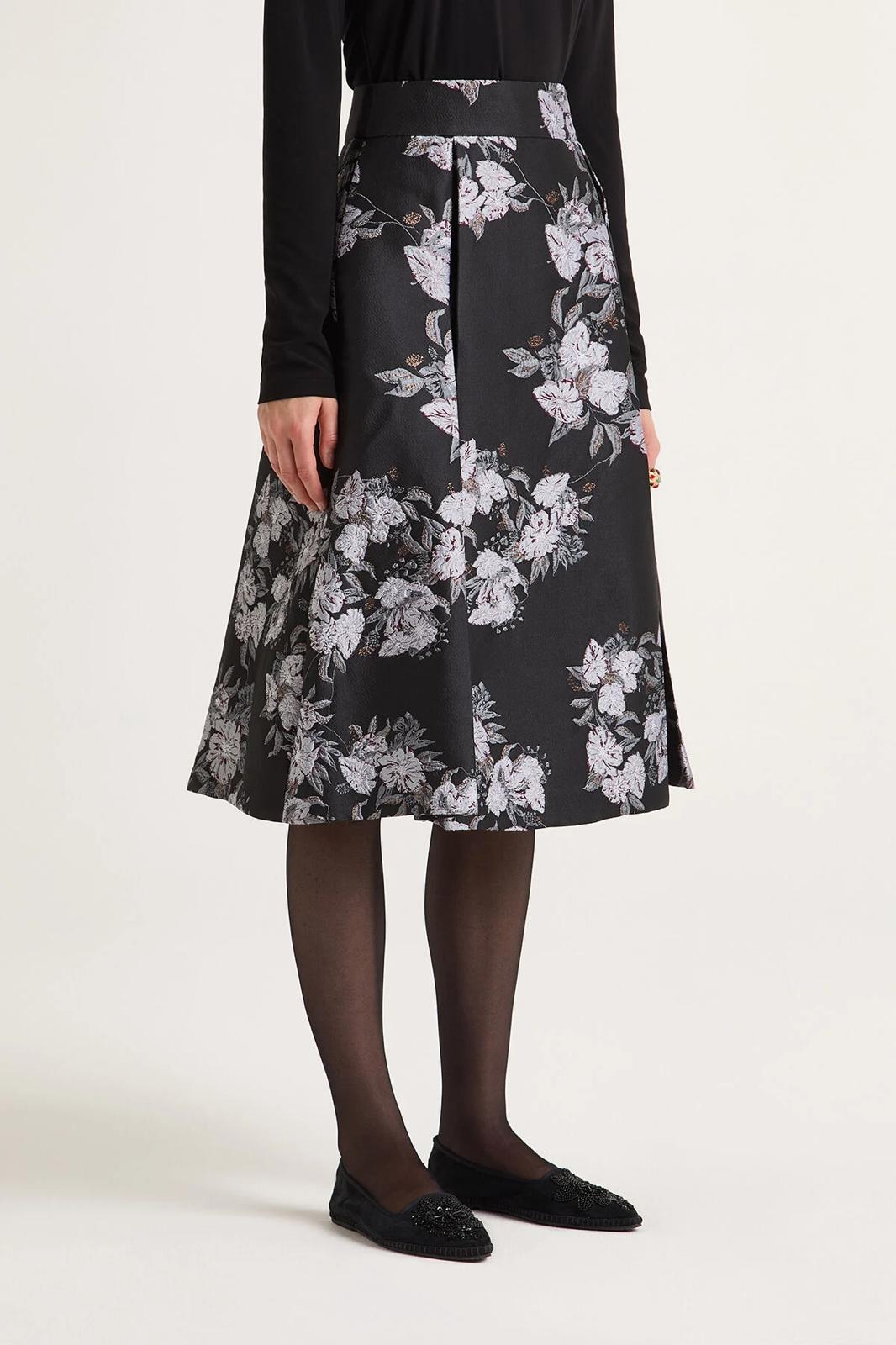 Gonna linea ampia ,realizzata in tessuto jacquard con movimento di ampi faldoni.