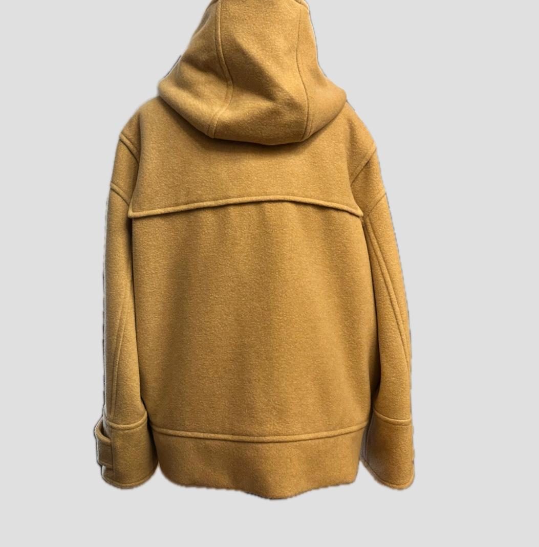 Montgomery in morbida lana con alamari e bottoni tipici , tasche laterali a filetto , ampio cappuccio , chiuso da passante con alamari nella parte superiore