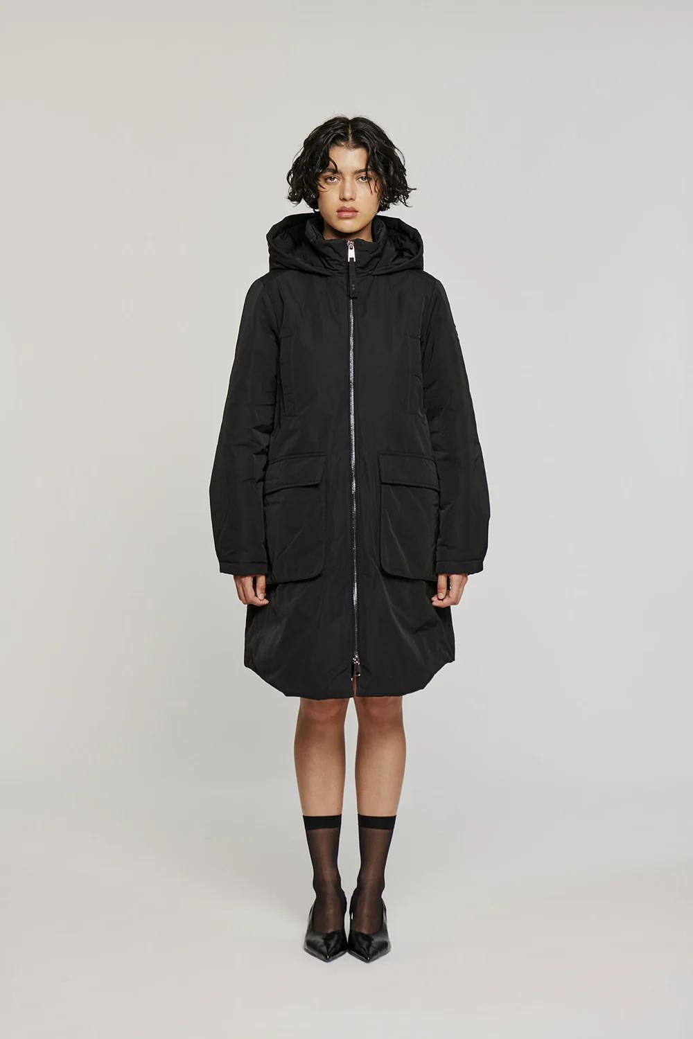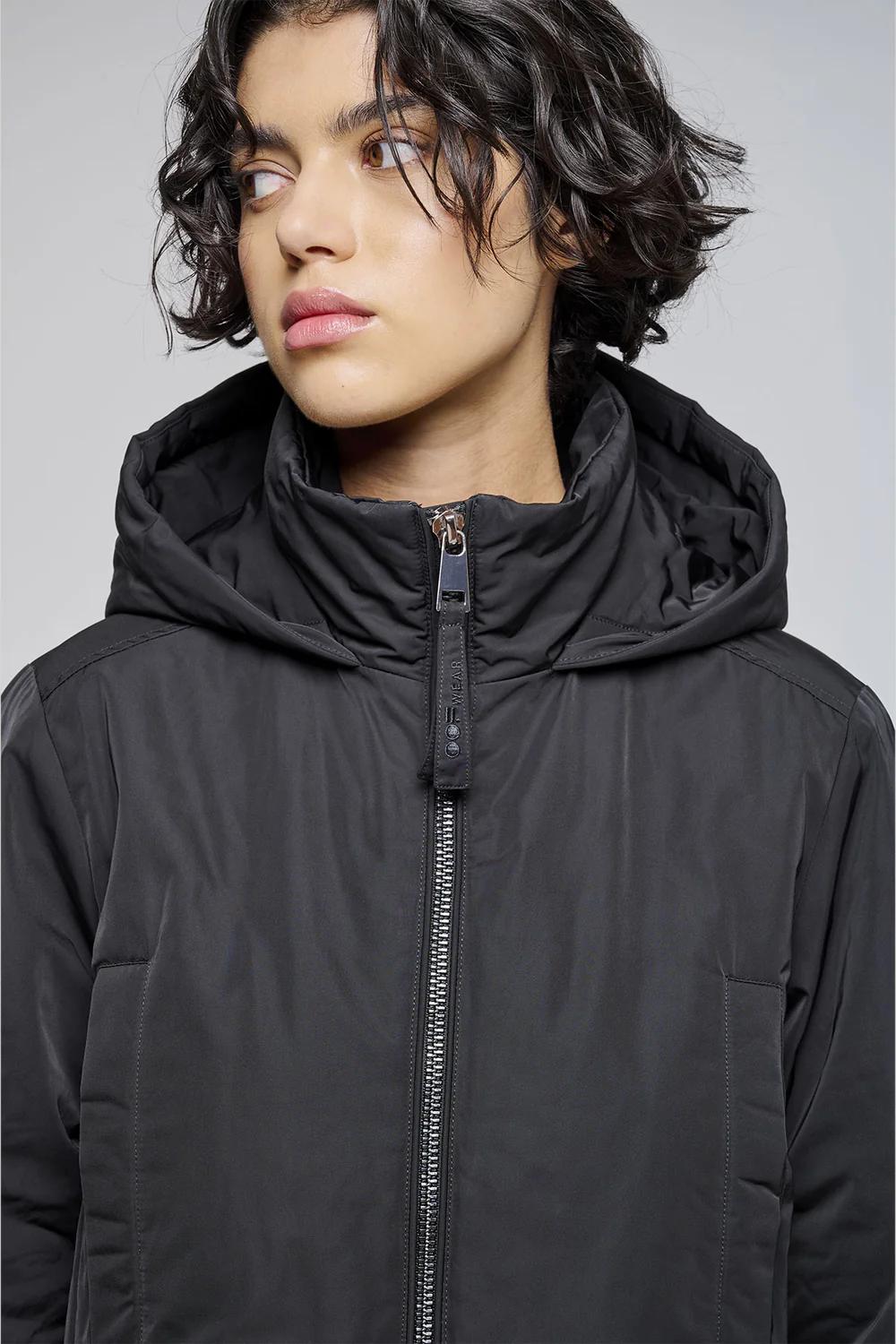 Capo spalla tecnico in tessuto memory impermeabile con cappuccio