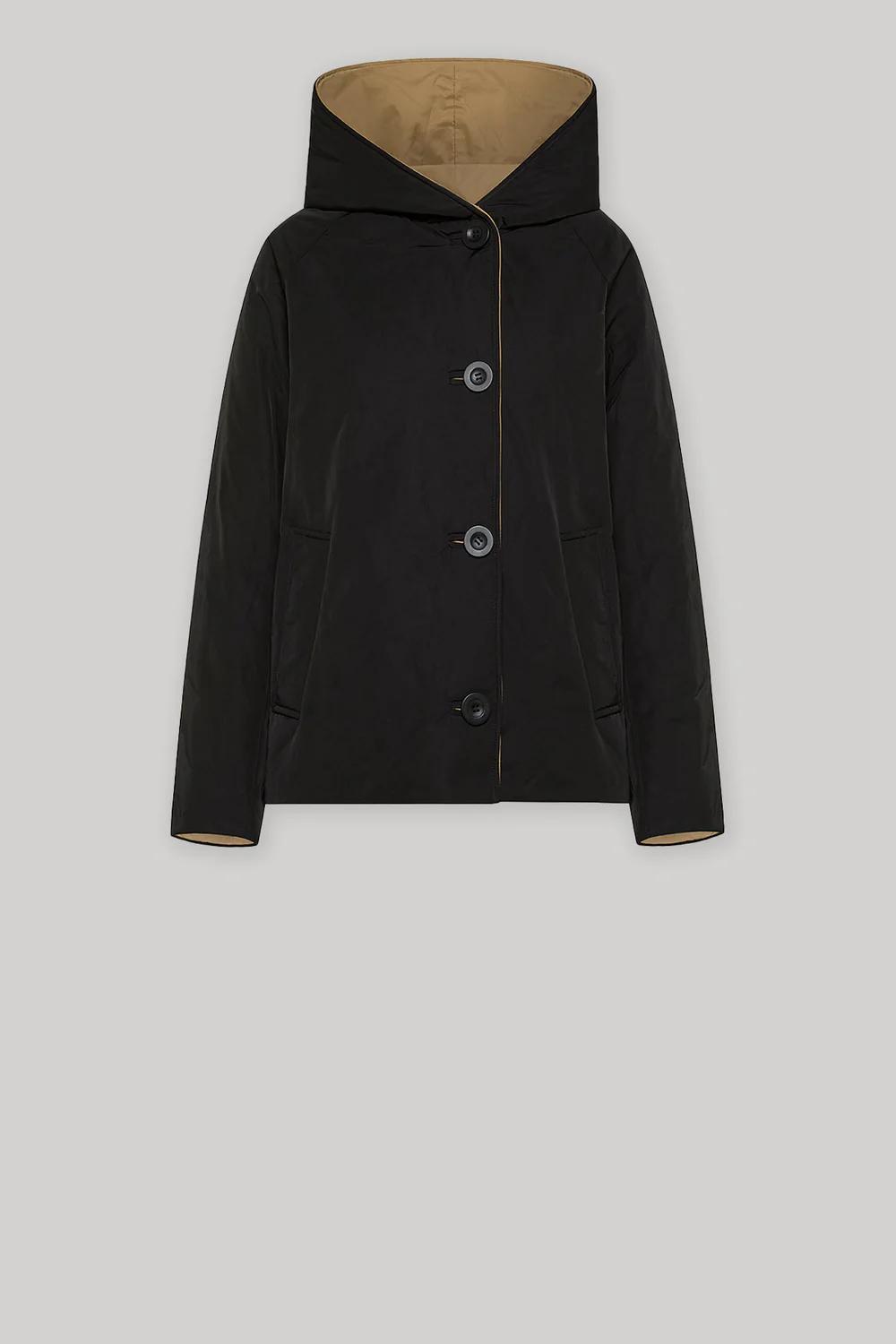 Giacca reversibile con cappuccio realizzato in nylon memory impermeabile