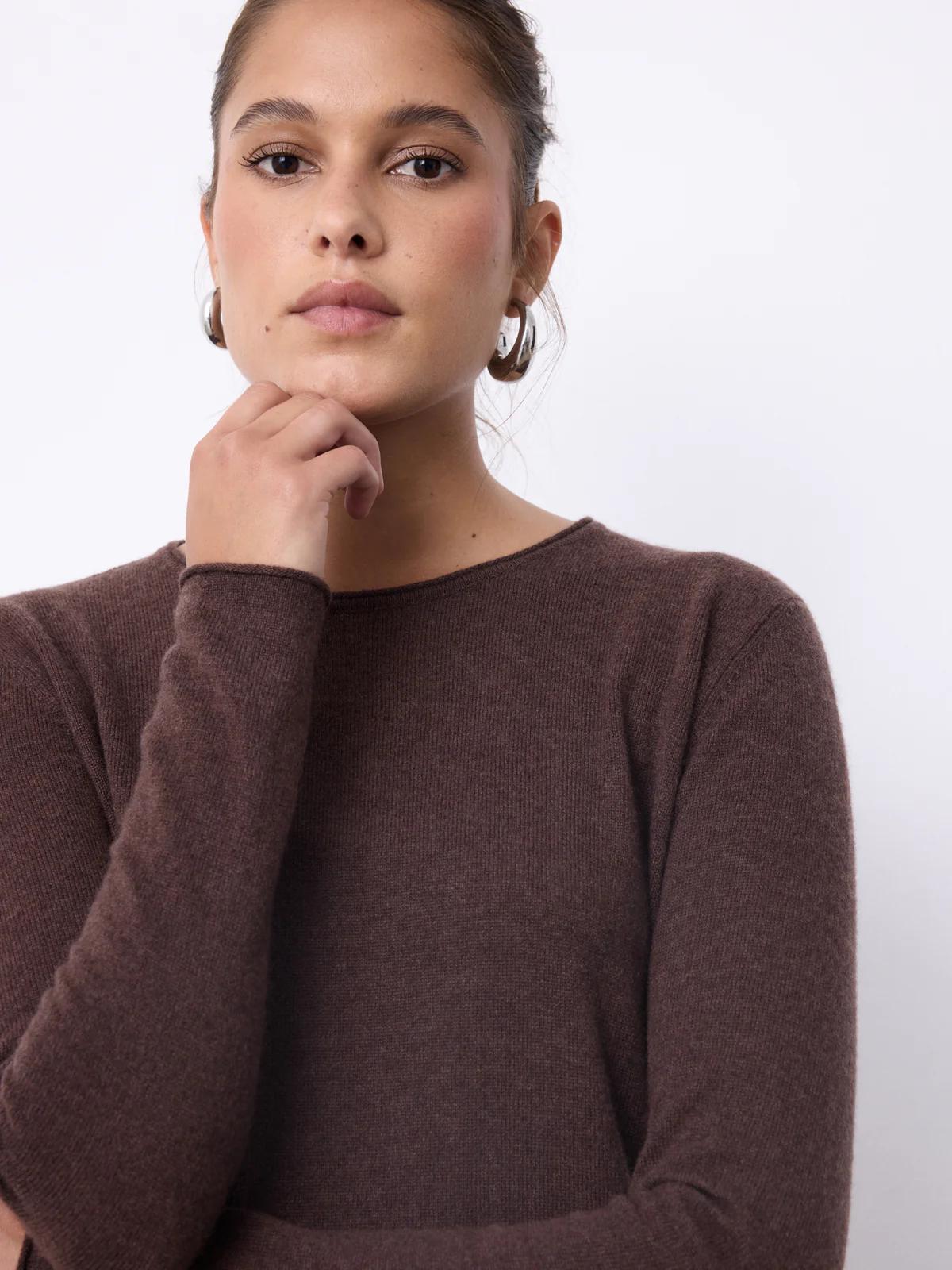 Maglia in cashemere giro collo , volume regolare , manica aderente