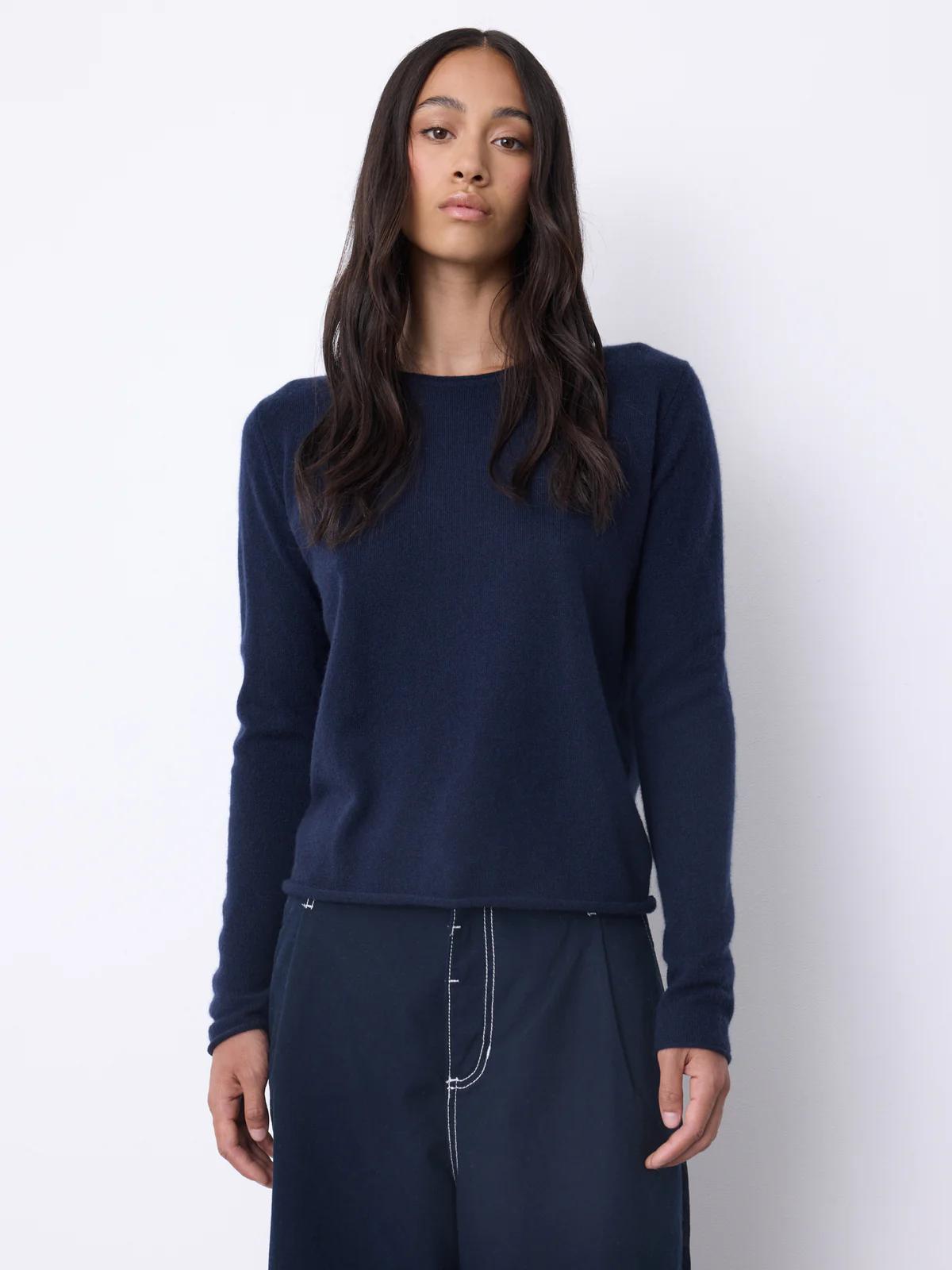 Maglia in cashemere giro collo , volume regolare , manica aderente