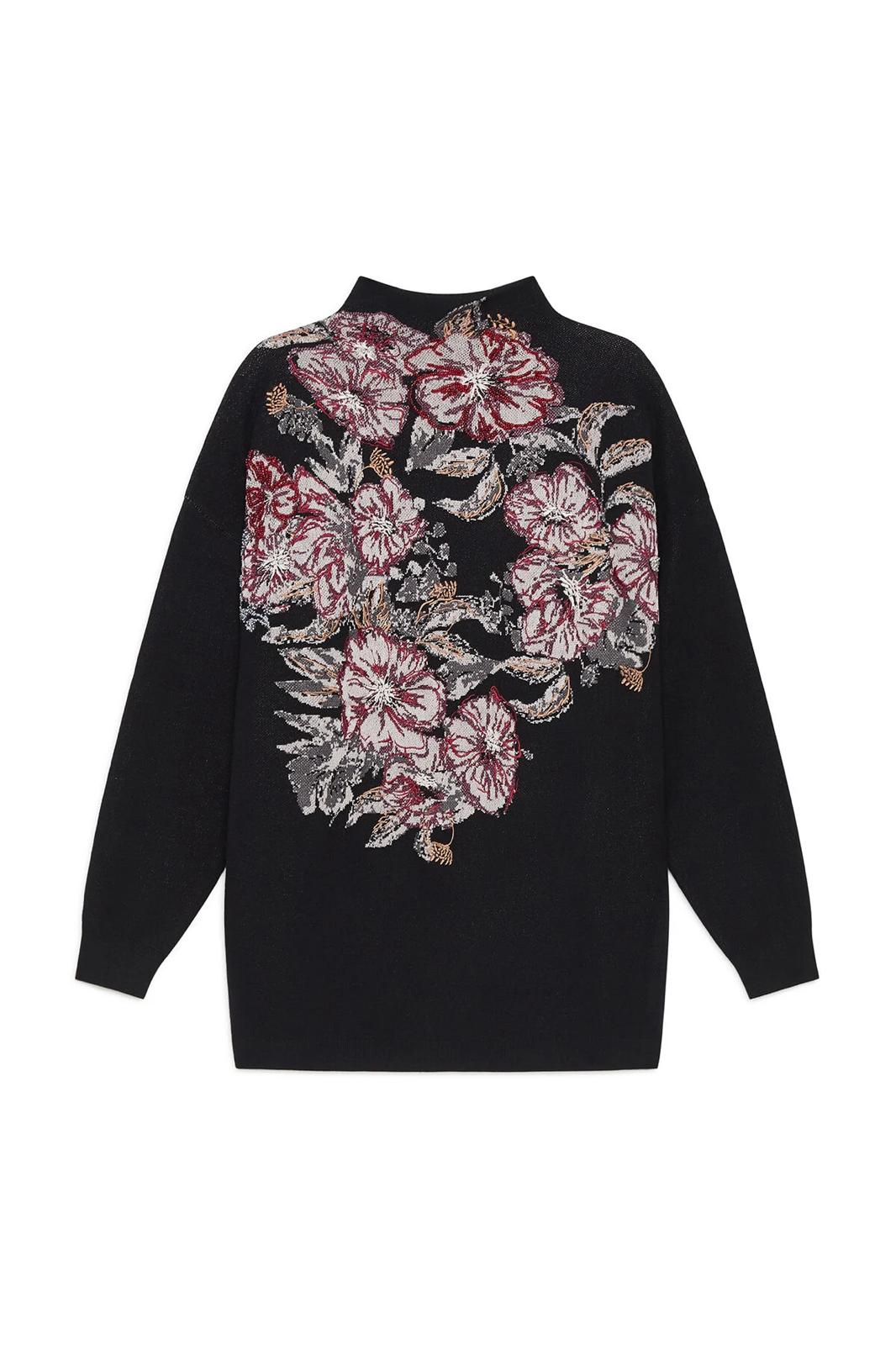 Pullover in viscosa , volume morbido ,lunghezza copri bacino , manica lunga con collo in piedi