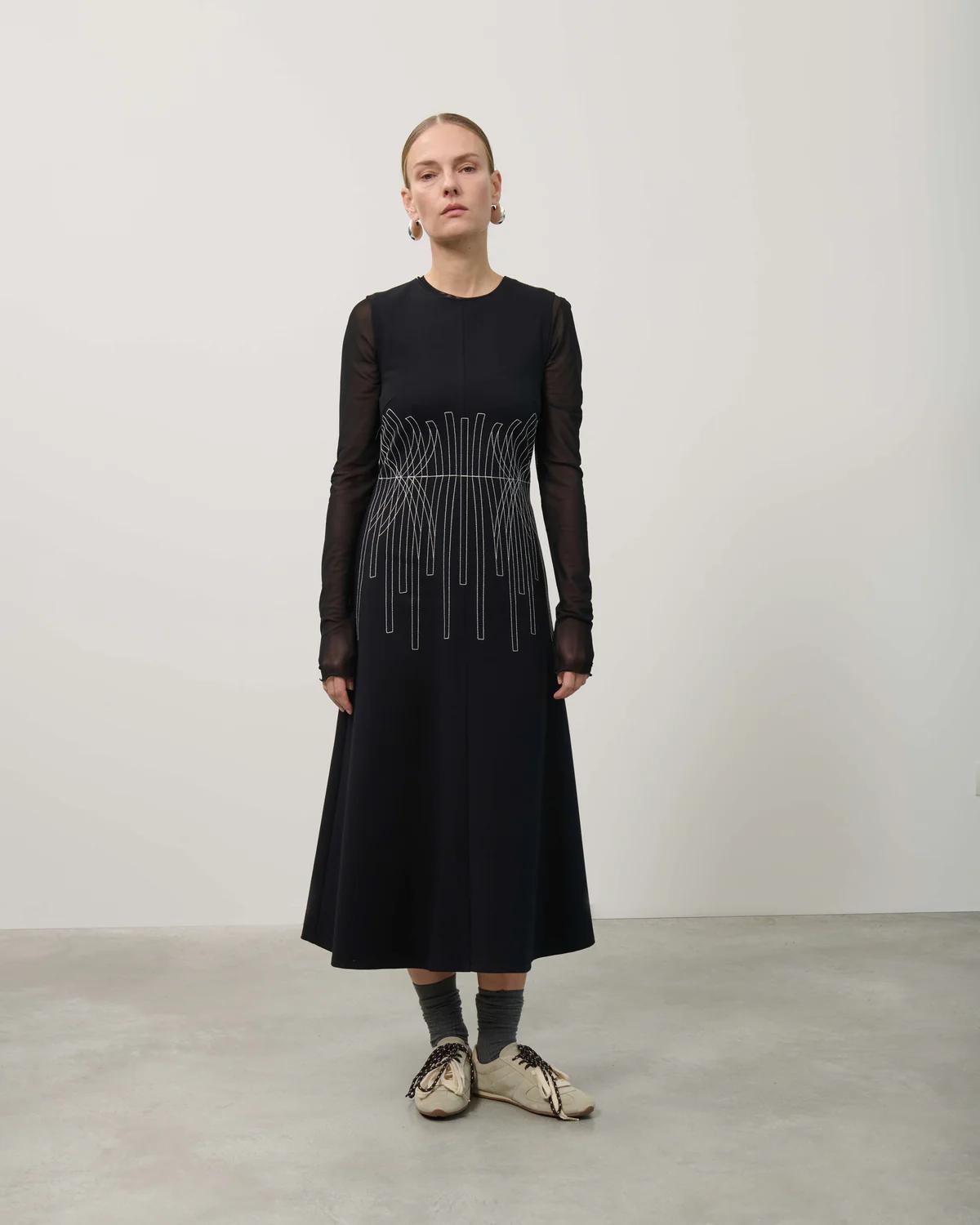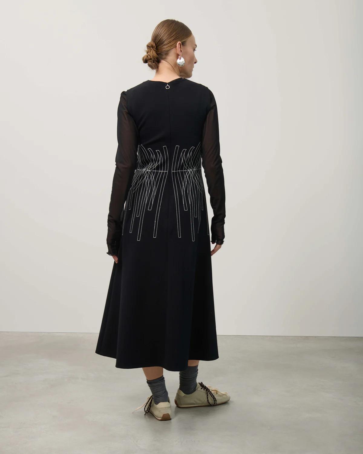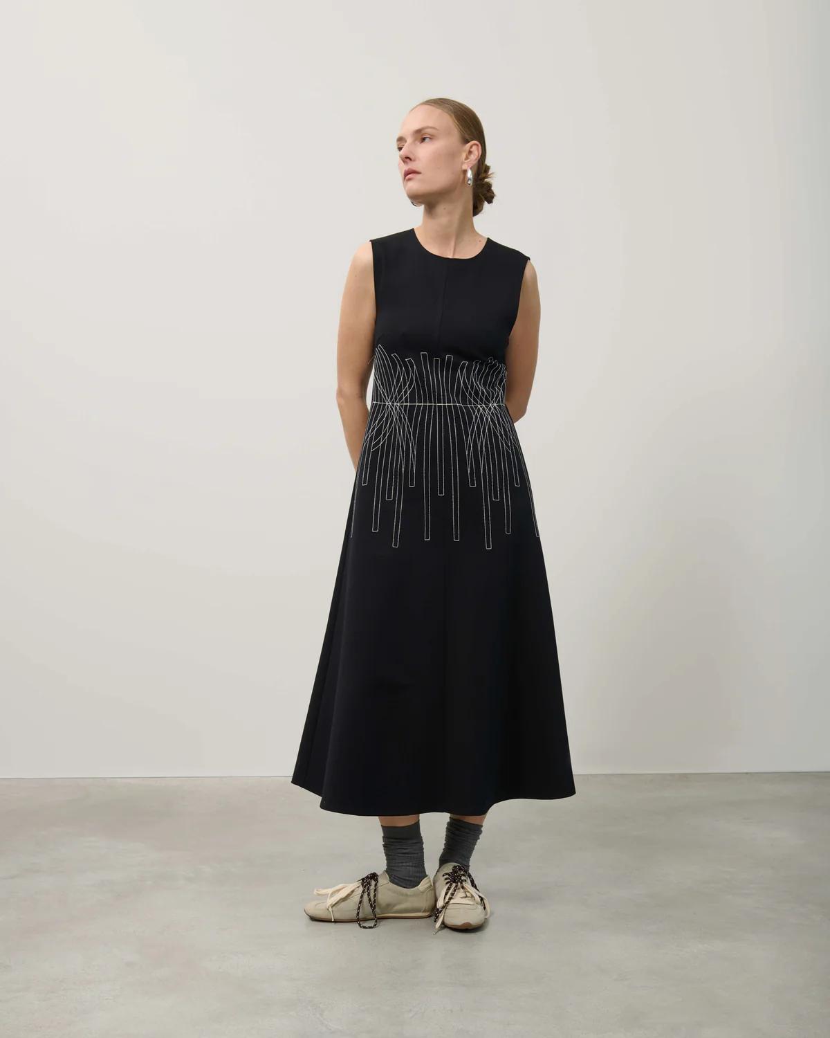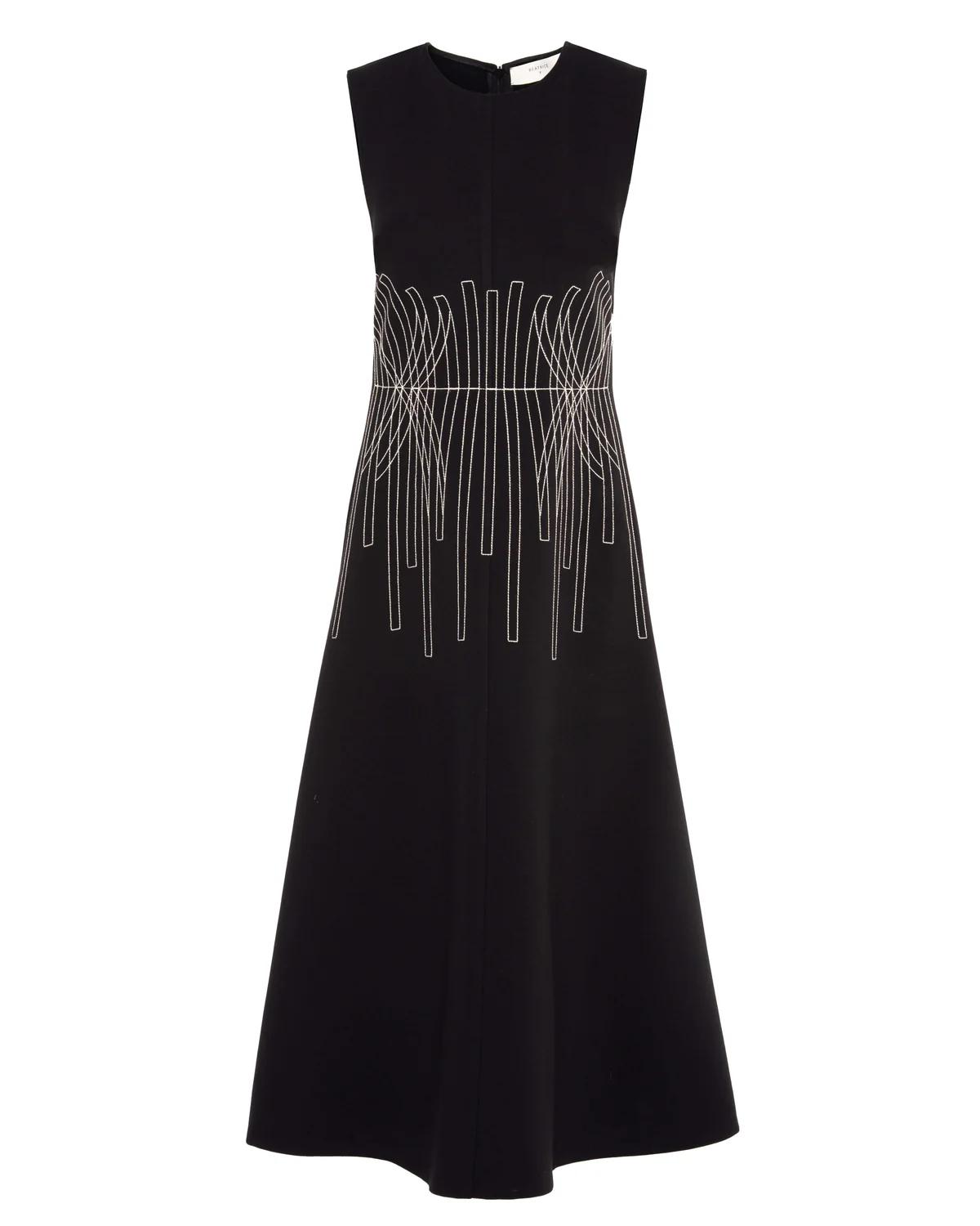 realizzato in punto milano , giro collo, senza maniche con chiusura con zip a scomparsa nel dietro